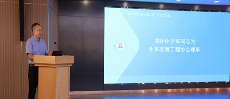 首先,姜兵会长代表理事会向会员大会作《北京表面工程协会九届三次会员大会工作报告》,系统回顾协会 2025 年上半年在会员服务、行业交流、政策对接等方面的工作成果,明确后续发展方向。